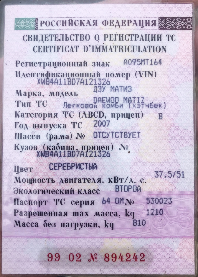 Свидетельство о регистрации транспортного средства